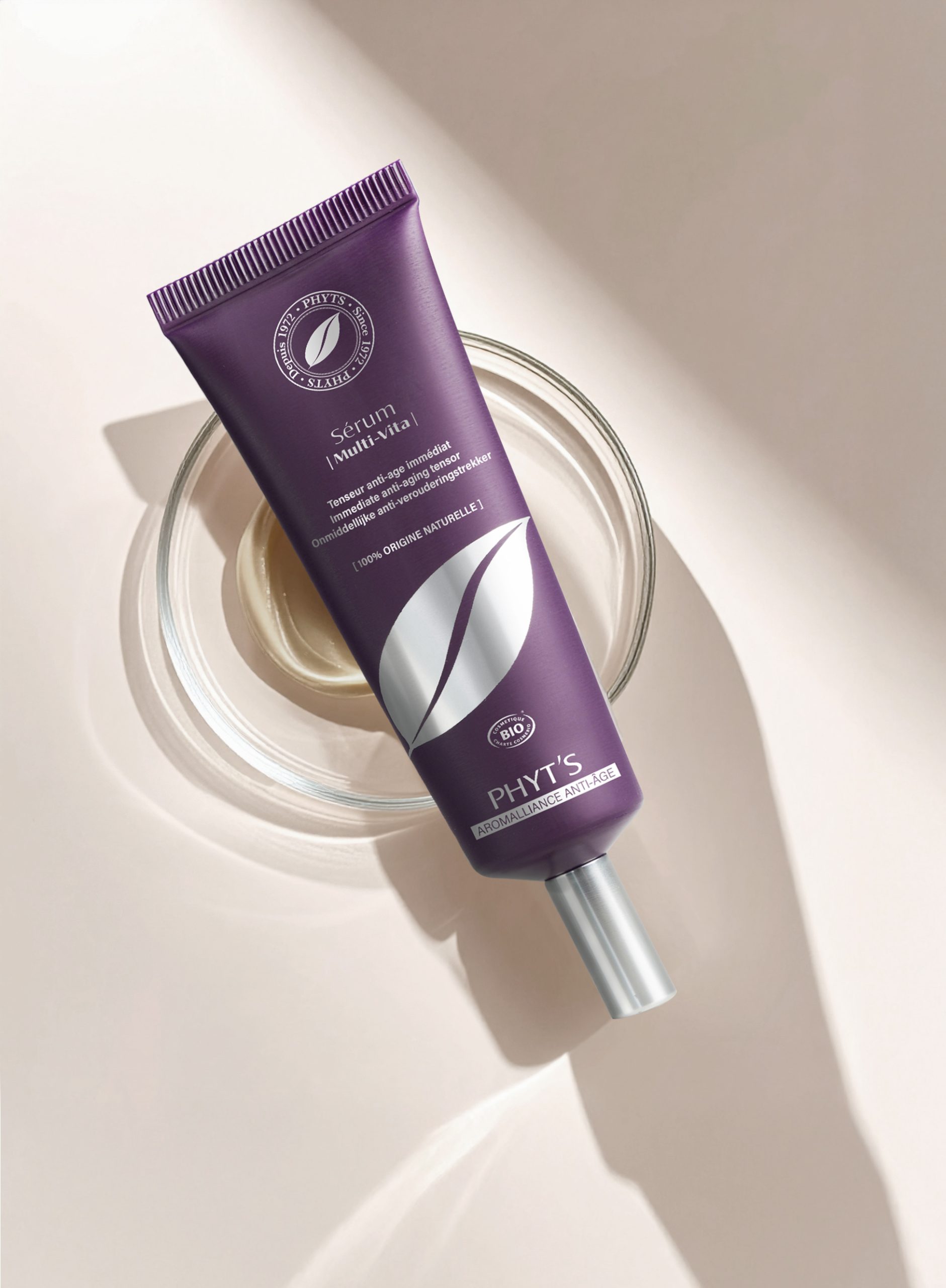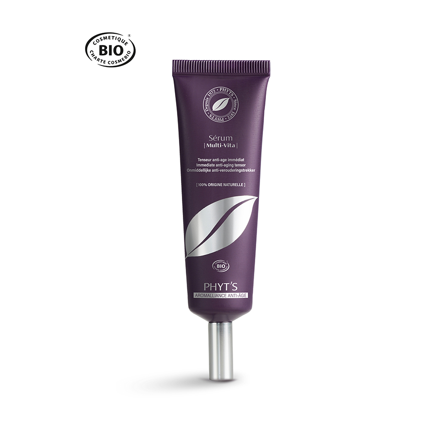 Tenseur Anti-ÂgeCe sérum aqueux anti-âge est un véritable tenseur immédiat. Le Sérum Multi-Vita renferme un cocktail d’actifs multivitaminés, dont le Cévéblé. Il retend les traits pour une peau plus ferme et éclatante de jeunesse. Formulation Vegan